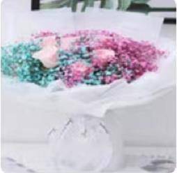 夜上海论坛6朵粉玫加蓝粉星鲜花束,如图包 |