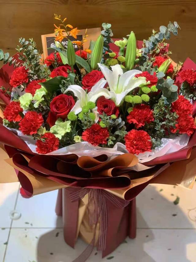 夜上海论坛19朵红康乃馨5朵百合花束 |