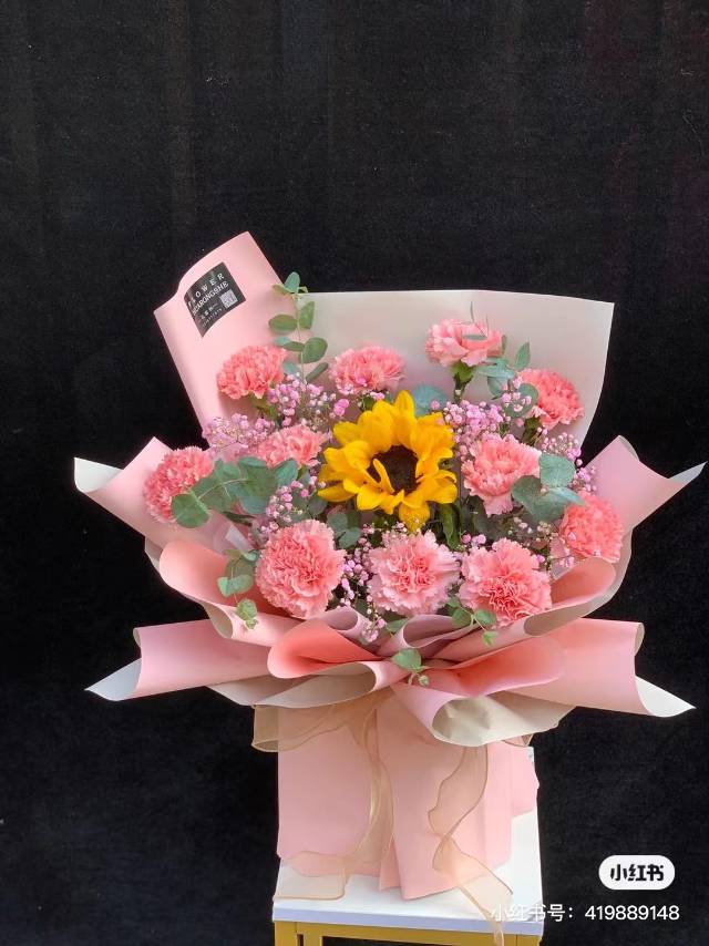 夜上海论坛11支粉康乃馨1支向日葵花束,如图 |
