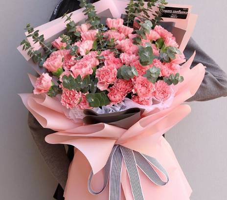 19朵粉色康乃馨花束,如图包 |