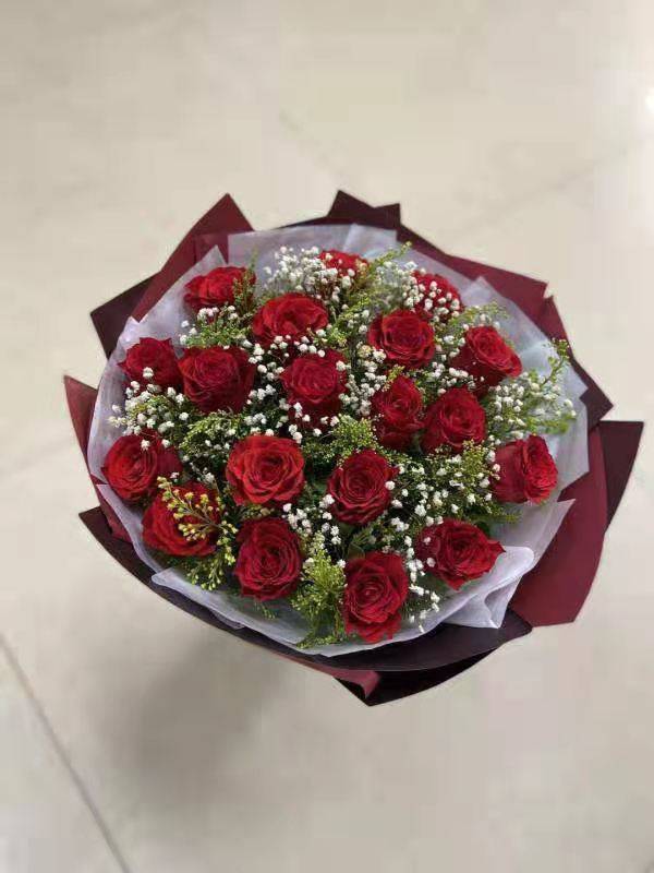 夜上海论坛11支红玫瑰2支多头白百合花束,如图包 |