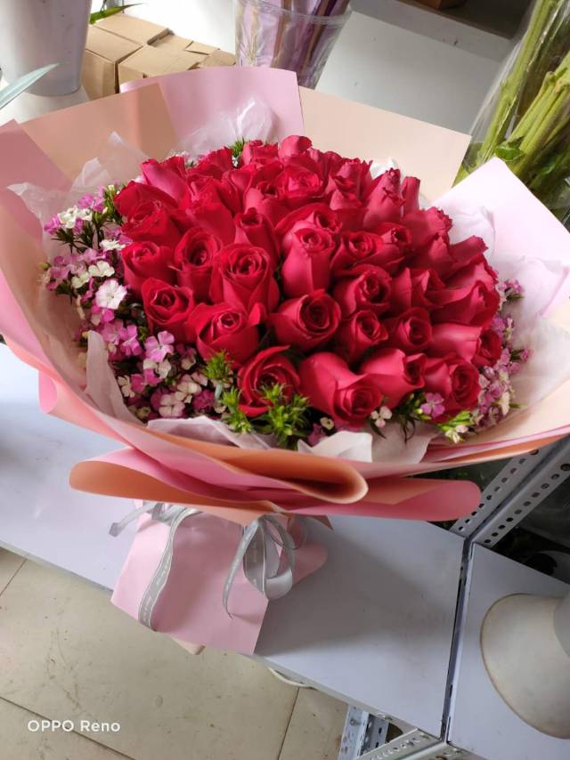 夜上海论坛33朵粉色康乃馨花束 款式包装如图 |