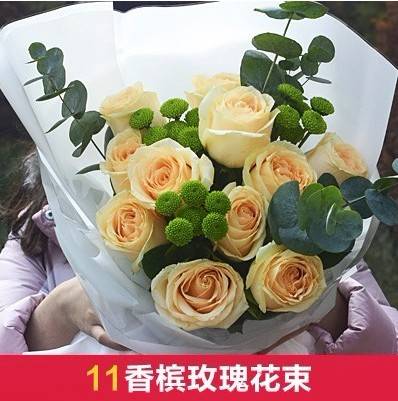 夜上海论坛11朵香槟玫瑰 绿雏菊 尤加利 白色韩束包装