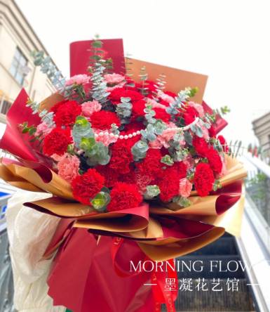 33朵红康乃馨粉康乃馨混搭花束 按图 |