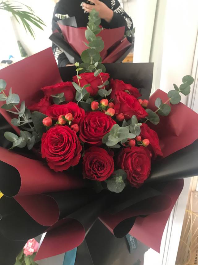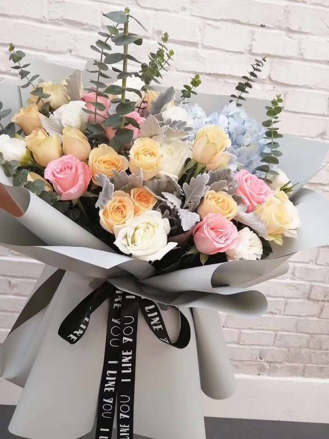 夜上海论坛用香槟。粉,红玫共26朵鲜花,按图的款包装 |
