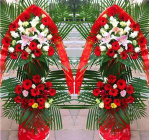 双层开业花篮一个,有贺词,如图包装,按时送达
