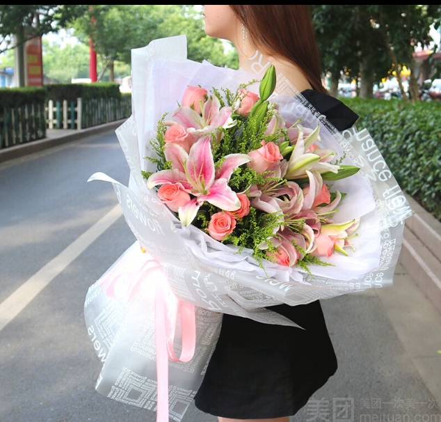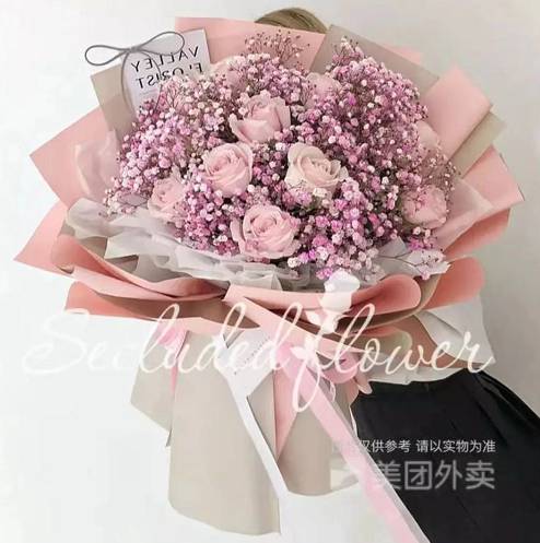 夜上海论坛19朵粉玫瑰花束图(小雏菊换成粉色的满天星,或者多加一些尤加利叶,谢谢,不要小雏菊) |