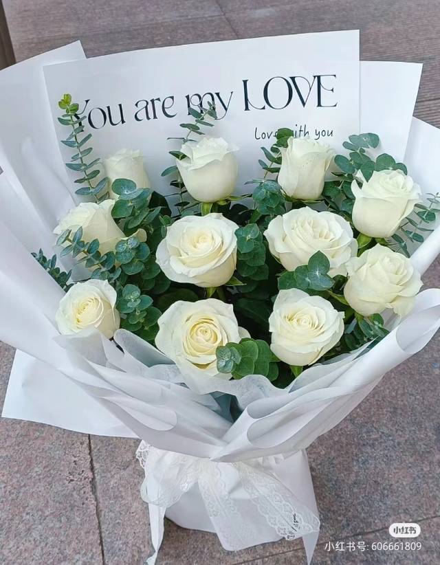 夜上海论坛11支白玫瑰配尤加利叶花束,如图 |