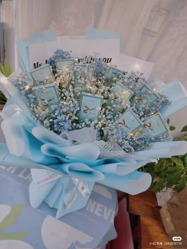 10包煊赫门香烟+蓝色满天星花束,按图包 |