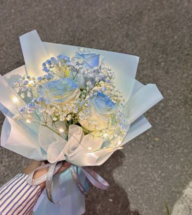 夜上海论坛3朵碎冰蓝满天星花束 加彩灯 |