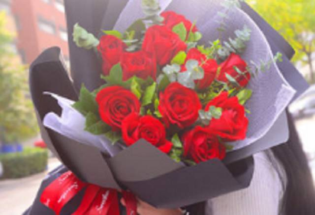 11朵红玫贵花束,花材新鲜,包装好看,有卡片,如图