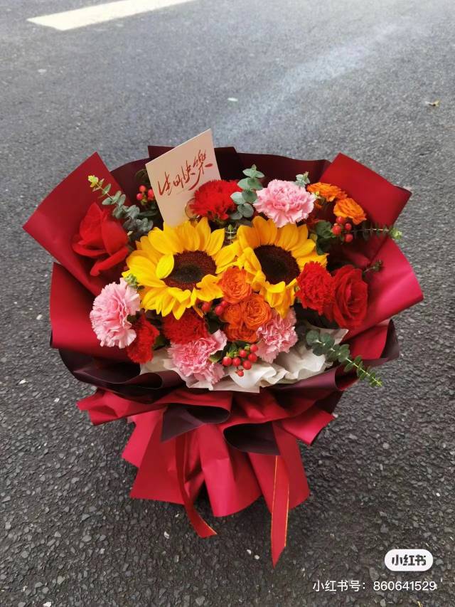 玫瑰康乃馨向日葵混搭花束,按图包 加彩灯 |