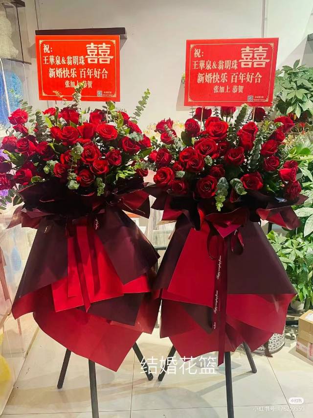 红玫瑰花篮一对(每个30朵红玫瑰)如图