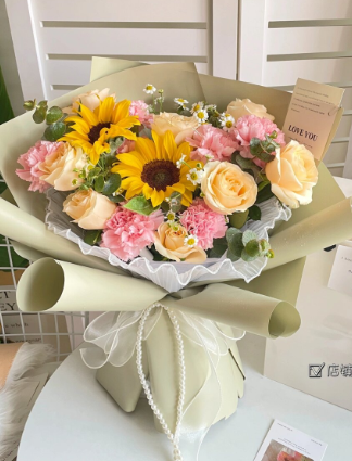 11朵红玫加白星加彩灯鲜花束,如图款式包 |