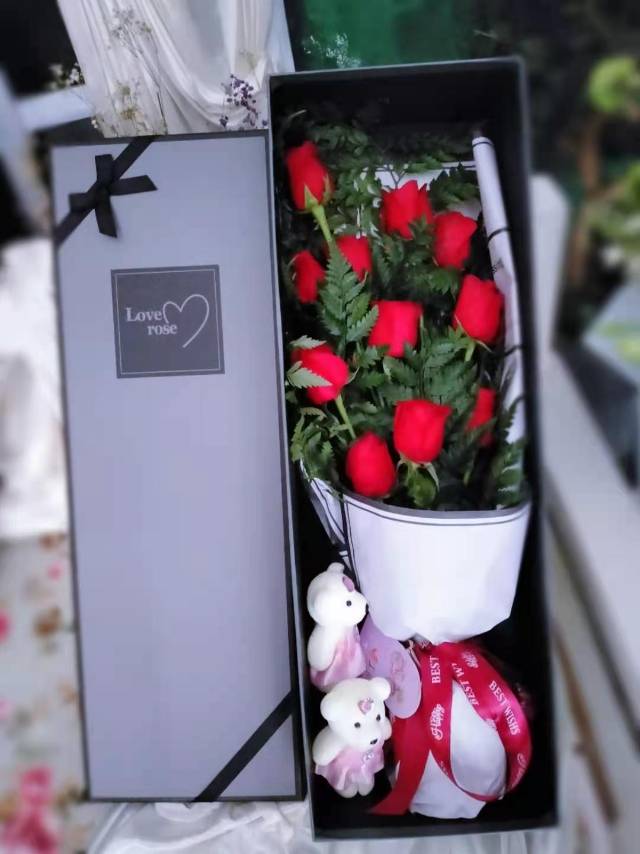 19支红玫瑰礼盒送2小熊 (礼盒和包装要用图片一样的)如图 |