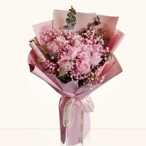 夜上海论坛11朵粉玫瑰满天星花束 如图 |