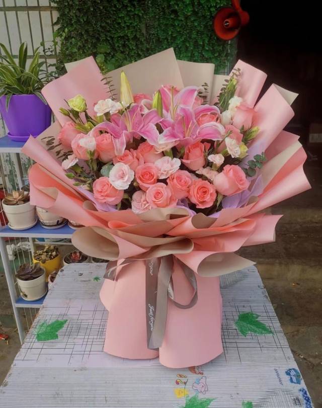 19朵戴安娜2支粉百合混搭花束 按图包装 |