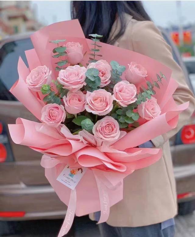 夜上海论坛11朵粉玫加粉蓝星鲜花束,如图包 |