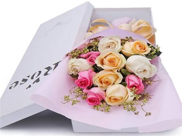11朵混搭玫瑰礼盒(4粉4香槟3白) |
