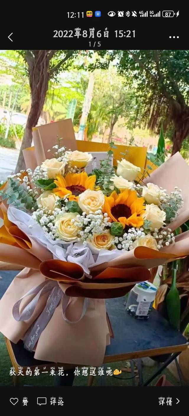 11朵红玫瑰2向日葵满天星混搭花束 |
