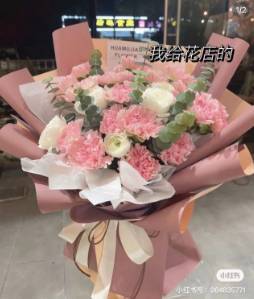 12朵粉康乃馨7朵白玫瑰混搭 按图包装 |