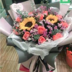 11朵粉玫瑰2向日葵混搭花束 按图 |