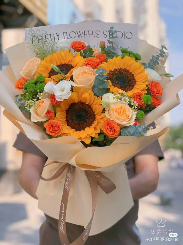 夜上海论坛香槟向日葵混搭花束,按图包 |