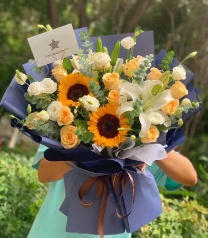 夜上海论坛6朵向日葵桔梗混搭花束 按图 |