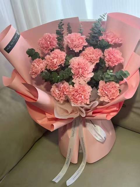 10朵粉康乃馨9朵香槟玫瑰花束 |