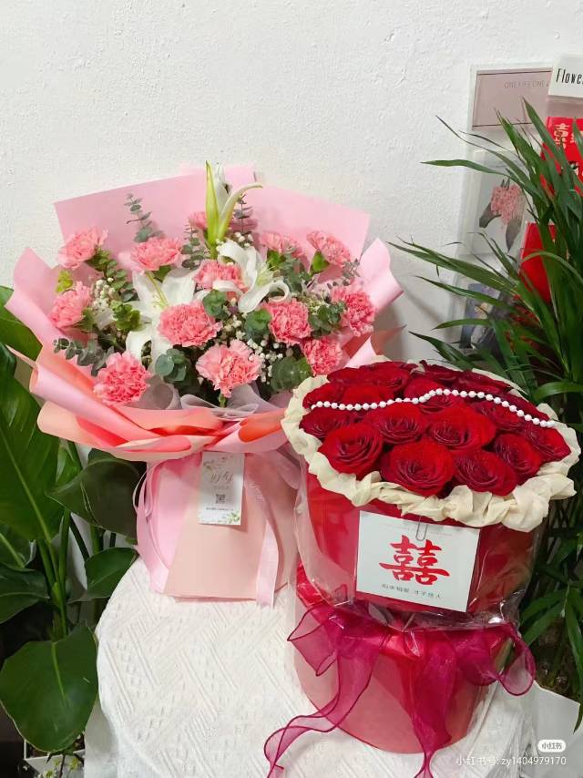 19支红玫瑰小香风款(不要喜字)+19支粉康乃馨花束(不要百合) |