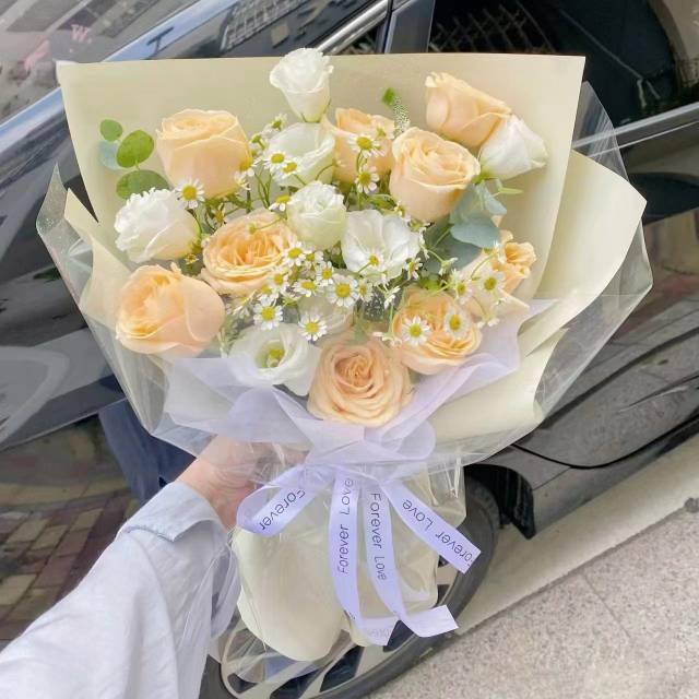 9枝香槟玫瑰花配洋桔梗混搭花束 |