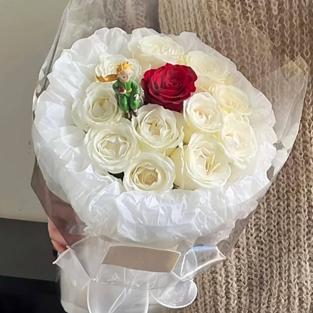 小王子花束【爆款11枝白玫瑰花配1支红玫瑰】真花鲜花,如图 |