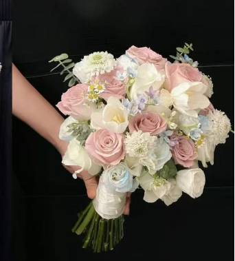19朵白郁金香 卡布白玫混搭手捧花,如图