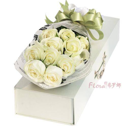 夜上海论坛一冰雪奇缘白色玫瑰11朵高档礼盒
