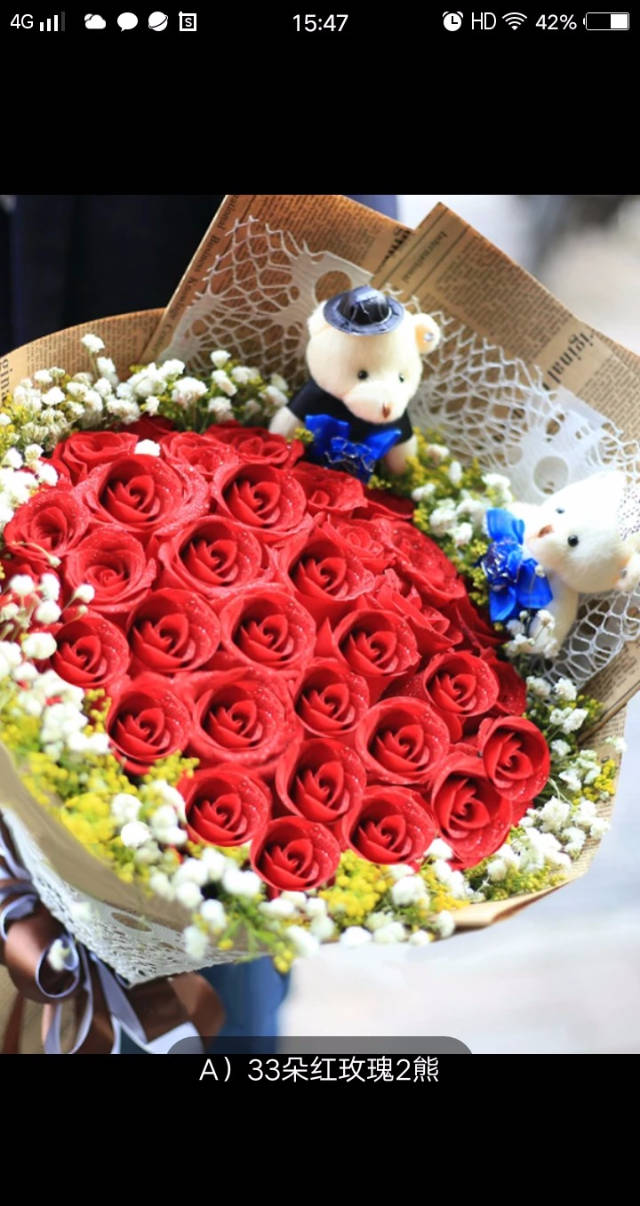 33枝红玫瑰+礼盒+娃娃
