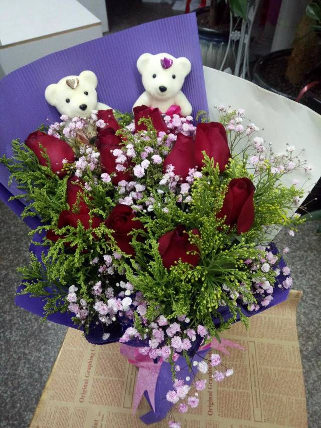11朵红玫送小熊
