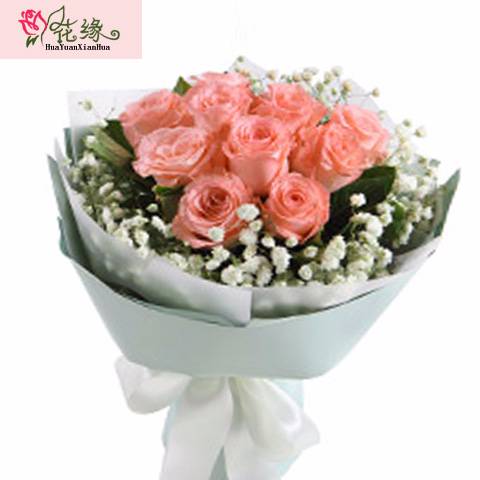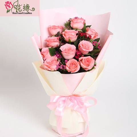 11朵粉玫配满天星