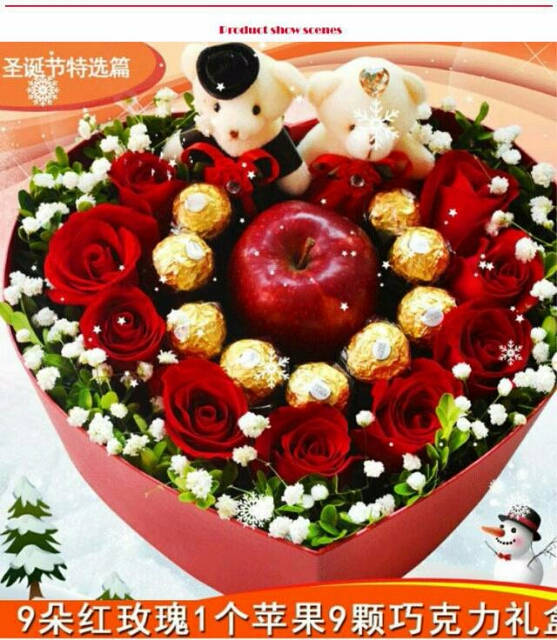 夜上海论坛11朵红玫瑰+9巧克力+2小熊+1平果