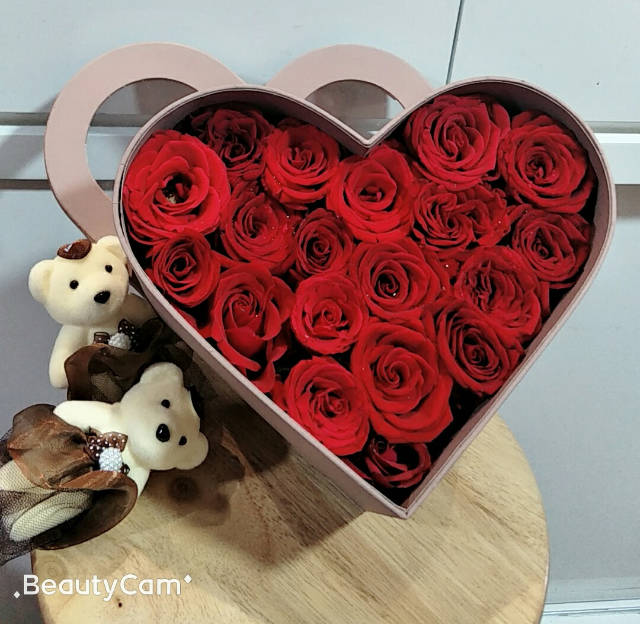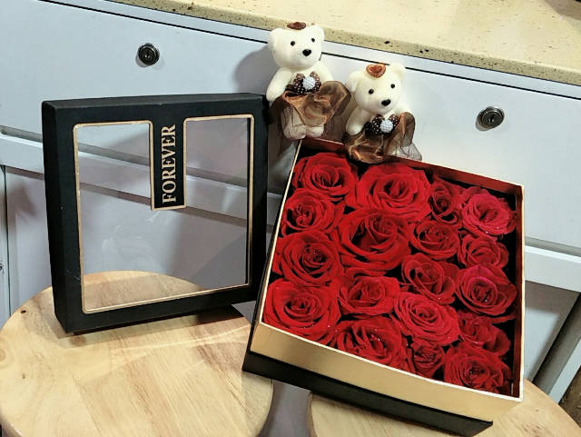 19支红玫瑰高档礼盒+两支小熊