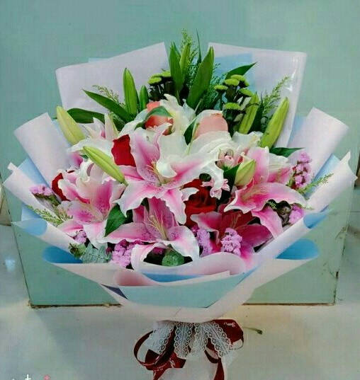 16朵粉百合花束