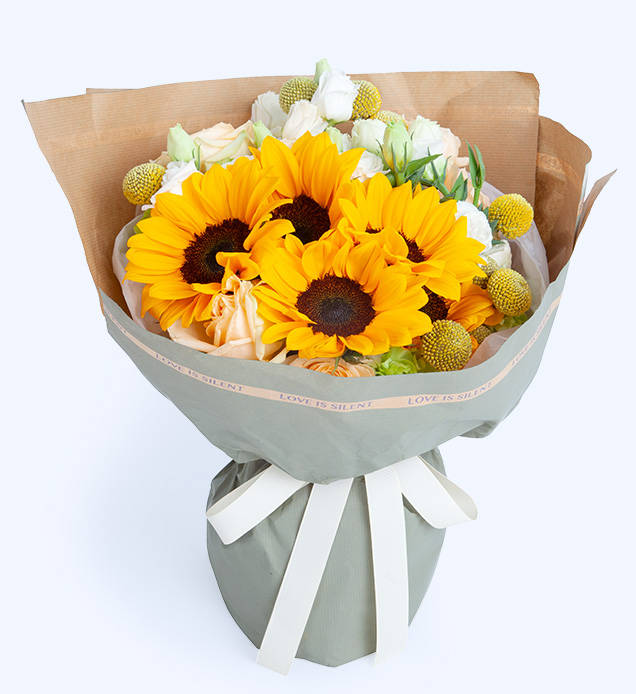 夜上海论坛手足情深.向日葵4支,黄金球6支.香槟10支.白色洋桔梗3支