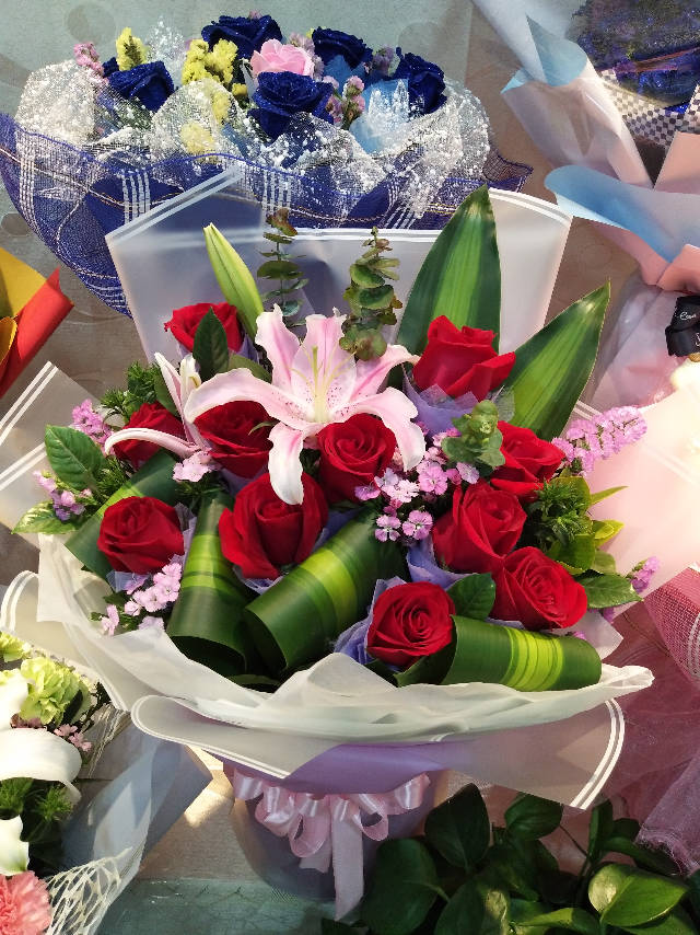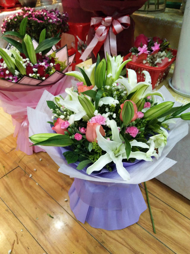 夜上海论坛合家欢乐(百合配粉玫瑰花束)