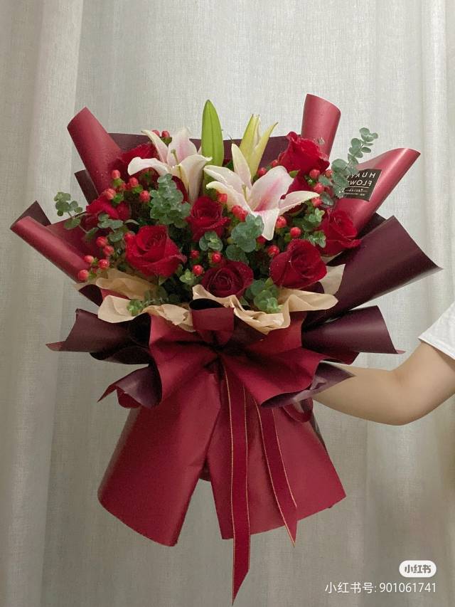 红玫瑰百合混搭花束