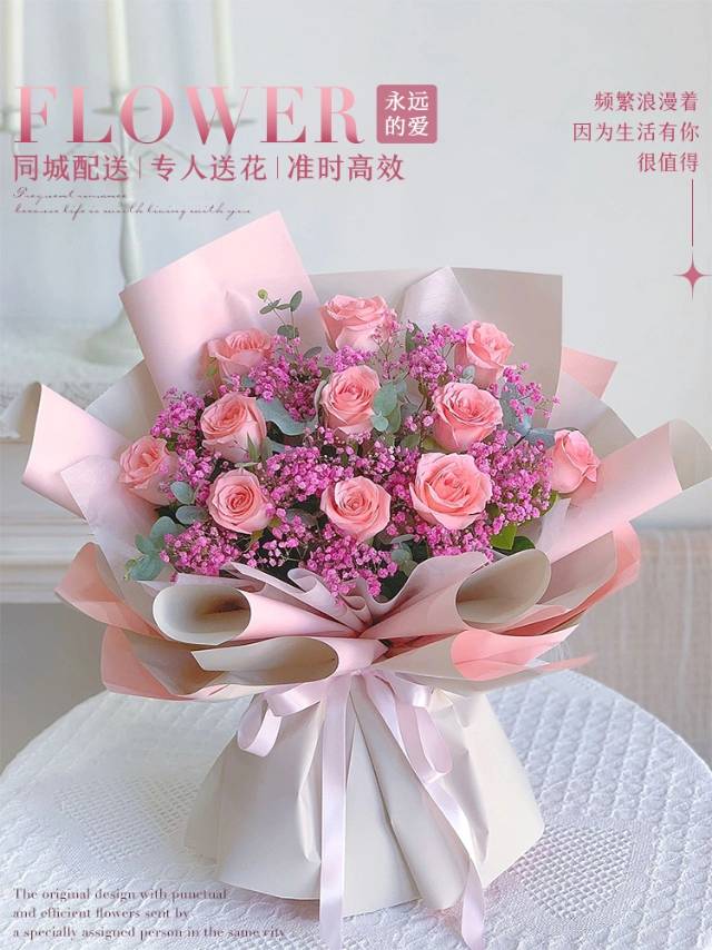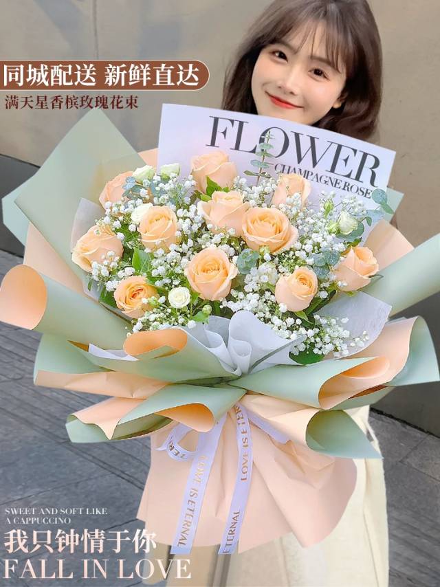 夜上海论坛11朵香槟玫瑰加满天星