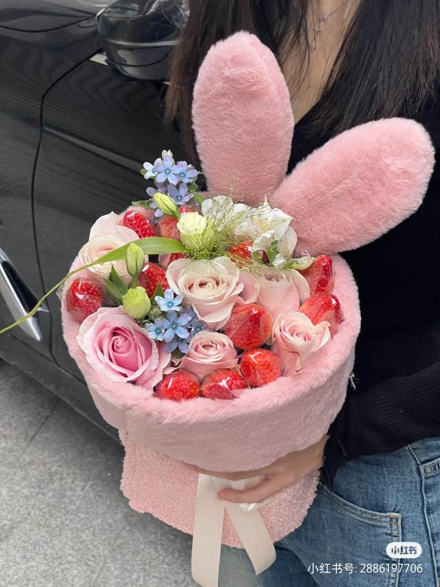 兔耳朵草莓混搭花束