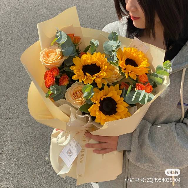 向日葵+香槟橙+芭比花束