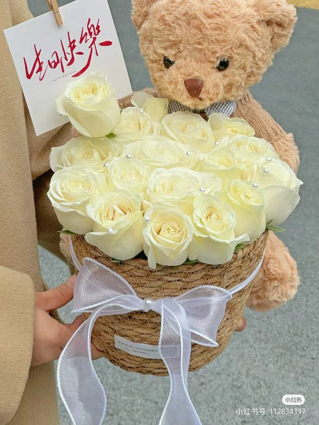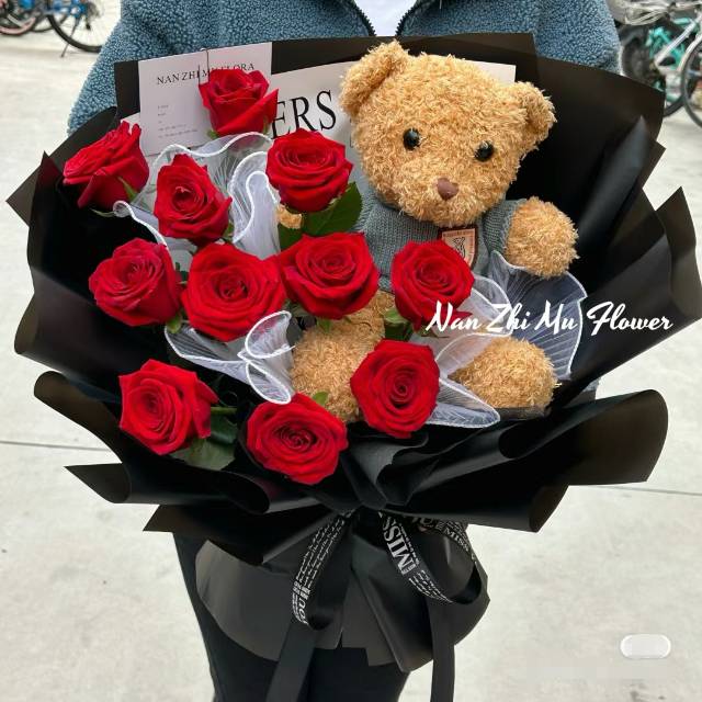 【小熊抱抱】11朵红玫瑰鲜花抱抱篮 送情人送爱人送闺蜜花束