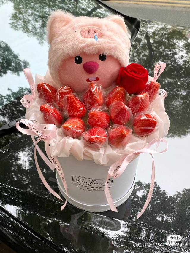 夜上海论坛【网红小海狸】小海狸草莓抱抱桶花束