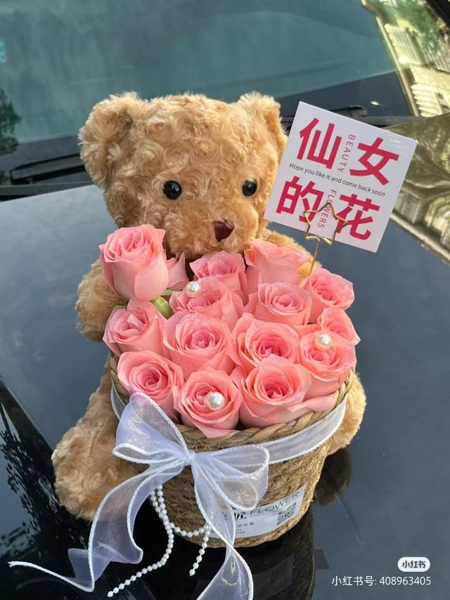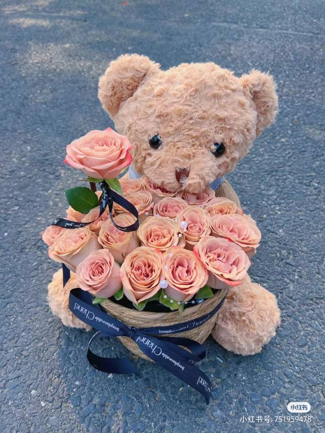夜上海论坛网红款粉玫瑰15朵抱抱熊