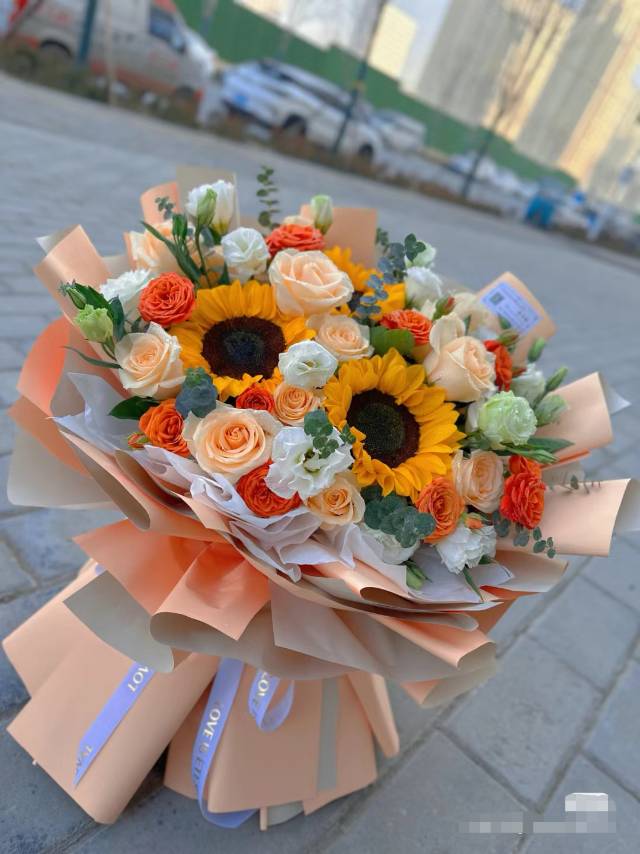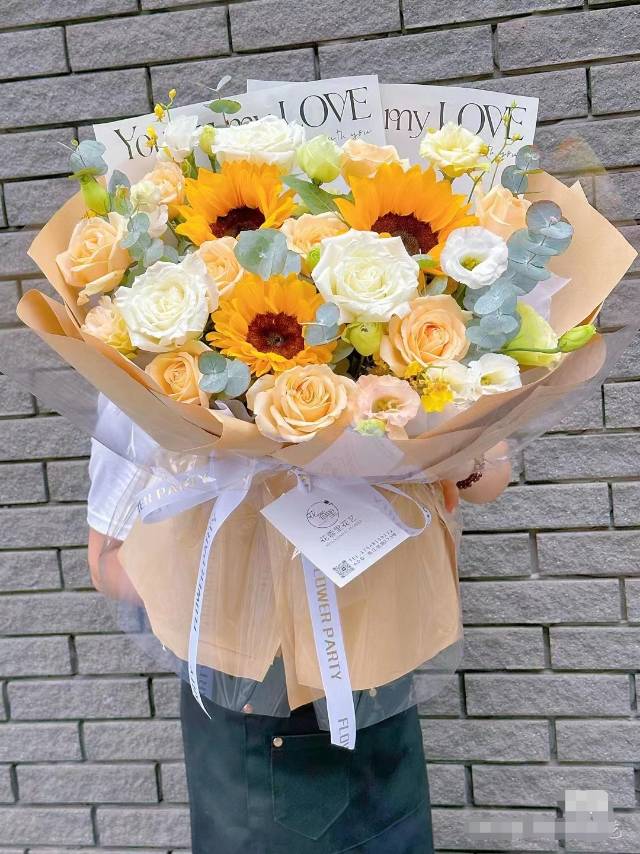 夜上海论坛向日葵香槟玫瑰混搭花束